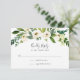 Designed to coordinate with our Alabaster wedding collection, this fresh green and white botanical RSVP card features a spray of watercolor greenery and white florals topping your desired response date and custom accept and decline wording.