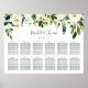 Wedding seating chart matches our Alabaster Floral collection, featuring lush watercolor botanical greenery and white flowers framing your guest seating details. Horizontal/landscape layout shown in 18x24" size.