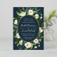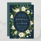 Our Alabaster wedding invitation surrounds your wedding day details with an oval frame of painted watercolor greenery, botanical foliage and white rose and peony flowers. Gold foil trim completes the design for a luxe look.