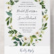 Our Alabaster wedding invitation surrounds your wedding day details with a modern geometric frame of painted watercolor greenery, botanical foliage and white rose and peony flowers.