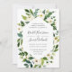 Our Alabaster wedding invitation surrounds your wedding day details with a modern geometric frame of painted watercolor greenery, botanical foliage and white rose and peony flowers.