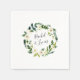 Designed to match our Alabaster wedding collection, these garden chic napkins feature your names in hand lettered script, encircled by a watercolor floral wreath of green botanical foliage and white rose and peony flowers.