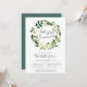 Elegant floral first holy communion invitations feature a wreath of watercolor white roses and peonies with lush green botanical foliage and leaves, encircling "first holy communion" in chic handwritten lettering. Personalise with your first communion details beneath, including space for both the religious ceremony and celebration or party to follow.