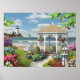 Alan Giana's painting "Gazebo by the Sea" brings you to a vibrant seaside garden where you can view the distant lighthouse.