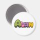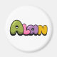 The name Alan in colourful bubblegum lettering. The colours can be changed.