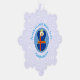 On these personalised paper ornament cards, an angel wears the flag of the Åland Islands and flies in the centre of a digitally created, textured, blue, fractal circle. The primary colours in this design are blue and white, chosen with Hanukkah in mind. Blue letters read ÅLAND ISLANDS ANGEL and make a space for the year and a name, allowing you to create customised papers ornaments for your party or event, and personalise the look. Background is white squiggly squares. Really fun for Hanukkah parties, bat mitzvahs, and other special occasions. Great for sending as greeting cards, too.