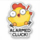 Alarmed Cluck Funny Chicken Clock Pun features a shocked chicken letting out an alarmed cluck! Perfect pun gift for family and friends who love cute alarming chicken puns.