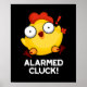 Alarmed Cluck Funny Chicken Clock Pun features a shocked chicken letting out an alarmed cluck! Perfect pun gift for family and friends who love cute alarming chicken puns.