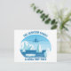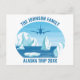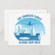 Cool custom Alaska vacation postcard for your family trip with glacier and ocean design and your personalised name. Icebergs float in the sea under a blue aeroplane on this keepsake souvenir of your arctic exploration of ice caps in the Pacific ocean.