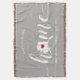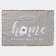 Show some home state pride with this cute rustic grey throw blanket featuring "home" in white calligraphy script lettering with a silhouette map of the state of Alaska standing in for the letter "O." A pink heart illustration inside the state map completes the design; you can change the position of the heart to your home city by opening the design tool and dragging the heart shape to your favourite spot. Personalise with your home city, family name and year established to create a perfect and memorable housewarming gift or addition to your new home.