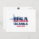 Alaska postcard. A creative typography design that encapsulates Arizona's essence with bold red, white, and blue colours, and patriotic elements, including stars and stripes.