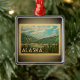 A cool vintage style Alaska ornament featuring beautiful mountains in a wilderness scene.