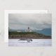 On a cloudy summer day, Point Retreat Lighthouse on Admiralty Island, Alaska, with a whale tail in the foreground.