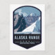 A vintage travel badge design of Mount Hunt, Mount Huntington and Mount Dickey of the Alaska Range near Denali National Park.
