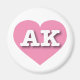 This magnet features a pink heart containing the bold, white, upper case letters AK, the official abbreviation for Alaska, the last frontier.