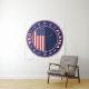 Badge of Alaska with flag of Alaska and flag of USA colours, rounded shape.