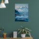 Capture the beauty of the Last Frontier with this modern Alaska travel poster. Featuring a bold design with whales and a cruise ship, this artwork brings a fresh twist to classic travel prints. Perfect for adding an adventurous, wanderlust-inspired touch to your home, office, or gallery wall.