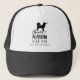 An Alaskan Klee Kai modern black dog trucker hat with cute dog paw design. This is a trucker hat that can be personalised on the backside with a name or other words > just delete that option if not using it.