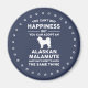 You can't buy happiness but you can adopt a Alaskan Malamute and that's pretty much the same thing in white uppercase sans serif font with the silhouette of a Alaskan Malamute type dog breed. Framed with circle of paw prints. Framed in a circle of paw prints.