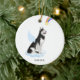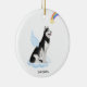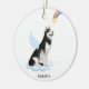 Celebrate your best friend with a custom Alaskan Malamute angel memorial ornament. This Alaskan Malamute christmas memorial ornament features a watercolor Alaskan Malamute dog with angel wings and a rainbow and shooting gold star. Personalise with name front, dates back . This Alaskan Malamute memorial ornament is a perfect dog remembrance keepsake or pet christmas memorial keepsake. COPYRIGHT © 2022 Judy Burrows, Black Dog Art - All Rights Reserved. Alaskan Malamute Angel Personalised Dog Memorial Ceramic Ornament
