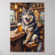 Alaskan Malamute Bar Art, Funny Drinking Dog Art Poster