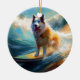 Alaskan Malamute Beach Surfing Painting Ceramic Ornament