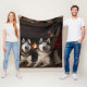 Alaskan Malamute by the Fireplace Christmas Fleece Blanket