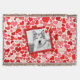 Red and pink falling hearts with cute Alaskan Malamute photo in frame.
