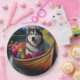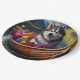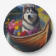 Alaskan Malamute Dog on Paddle: A Scenic Adventure Paper Plate