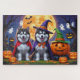 Alaskan Malamute Dogs Pumpkin Halloween Funny Jigsaw Puzzle