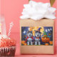 A playful Halloween scene featuring a mischievous little pup peeking out of a carved pumpkin, surrounded by spooky-fun fall vibes. With cheeky charm and autumn colours, it’s the perfect touch of humour for the season.
