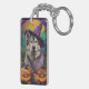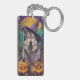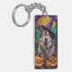 Alaskan Malamute Halloween Witch and Pumpkin Key Ring