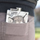 The flask itself is fine. It’s a cheap flask, obviously bought in bulk, however am prepared to overlook that. Given that it is a personalized item, I would have liked to have seen gift boxing instead of the generic packaging. Terrible printing, and/or quality. It’s a cheap, tacky vinyl. It is not cut straight and is also applied in a way that it is overhanging the bottom, causing the glue to catch on items and it will eventually roll and tear, damaging the wrap.