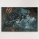 Alaskan Malamute Riding Motorcycle Halloween Scary Jigsaw Puzzle