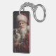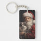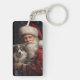 Alaskan Malamute with Santa Claus Christmas Key Ring