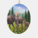 Original fine art design of an Alaskan moose family by illustrator/designer Carolyn McFann of Two Purring Cats Studio on a quality holiday ornament for wildlife fans.