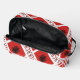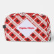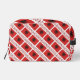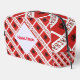 Personalised Dopp kit, toiletry bag, or cosmetics bag shows a tiled version of the Albanian flag with the word ALBANIA underneath in the colours of the flag. Great for travel groups, clubs, and family reunions. Add a name in red letters in the white squiggly squares. Mum or Dad will appreciate it for Mother's Day or Father's Day gift to honour their heritage.