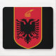 The Emblem of the Republic of Albania (Albanian: Stema e Republikës së Shqipërisë) is an adaptation of the flag of Albania. It is based on the flag and seal of Gjergj Kastrioti Skanderbeg. The crest above the head of the two-headed eagle is the helmet of Skanderbeg, surmounted with billy goat's horns. The eagle is considered to violate the conventional rule of tincture, which forbids placing a color (i.e. a dark tincture) upon another color.