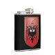 The flask itself is fine. It’s a cheap flask, obviously bought in bulk, however am prepared to overlook that. Given that it is a personalized item, I would have liked to have seen gift boxing instead of the generic packaging. Terrible printing, and/or quality. It’s a cheap, tacky vinyl. It is not cut straight and is also applied in a way that it is overhanging the bottom, causing the glue to catch on items and it will eventually roll and tear, damaging the wrap.