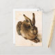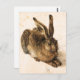 Albrecht Durer Young Hare postcard. Gouache and Watercolor on Paper. Northern Renaissance Artist Albrecht Durer was renowned for his etchings, yet he was also an accomplished water colour painter. Young Hare (Feldhase) is one of the most famous animal paintings of all time. The work features a beautiful rabbit with long hair and whiskers sitting proudly on a a soft gouache background. A beautiful gift for fans of Albrecht Durer, Northern Renaissance Art, and rabbit paintings.