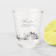 Modern Albuquerque wedding skyline shot glass favour gift with "cheers" script. The design showcases a stunning sketch with the ability to customise your names and exact location. Enter the Zazzle design tool for additional customisations.