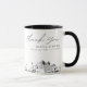 Modern Albuquerque skyline coffee mug favour gift with "thank you" script. The design showcases a stunning sketch with the ability to customise your names and exact location. Enter the Zazzle design tool for additional customisations.