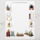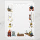 Fill in your name or the name of a gift recipient for this personalised alchemy laboratory stationery with an array of beakers, distilling apparatus, thermometers and other lab equipment around the border of the page, with room for correspondence.