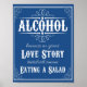 Alcohol Because No Story Started with Salad Wedding Bar Sign - Funny Wedding Open Bar Signage chose your background colour