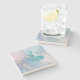 The coasters are gorgeous, a quality feel and heavy weight. They look like a precious archeological find. A rustic stone juxtaposed with a modern floral black and white print. I like the way the print goes slightly imperfect on the cut stone edges giving them a kind-of natural beauty.
