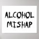 Funny sayings T-shirts, mugs, bags, cards, stickers, key chains, and so much more with black text that reads Alcohol Mishap!