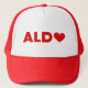 The name Aldo with the letter o replaced with a red love heart. A perfect gift for a friend or family member with a big heart or perhaps you are a fan of someone with the name. A sports personality or artist. Wear it at an event to show that you love them. The colours can be changed.