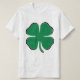 Giant Green Shamrock on front of t-shirt. And on the back, "Ales volat propriis. The bird flies to its own. Thanet, e." Show your Irish Pride this St. Patrick's Day.