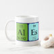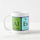 Alessio spelled out as Al Es S I O (Aluminum Einsteinium Sulfur Iodine Oxygen) on a mug for the scientist in you.