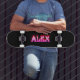 Alex pink fire Skatersollie skateboard. Add your own custom text and images to this skateboard. Perfect gift idea for loved ones named Alex. Great gift for birthdays, graduations, and parties. More names and designs are being added everyday.